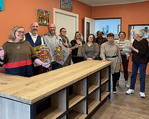 De dagbestedingswinkel in gebouw Het Dok op terrein Hernesseroord in Middelharnis is verrast met een nieuwe toonbank, gemaakt door het In-Made arbeidsbedrijf van PI Alphen a/d Rijn.